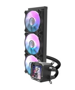 Dzięki obsłudze ARGB 5V Darkflash DV360S oferuje spektakularne efekty świetlne, które można zsynchronizować z płytą główną ASUS, MSI, GIGABYTE czy ASROCK. Zastosowanie technologii Addressable RGB pozwala na wybór spośród 16,8 miliona kolorów, co daje niemal nieograniczone możliwości personalizacji. Co więcej, chłodzenie wyposażono w 3,2-calowy wyświetlacz LCD IPS o rozdzielczości 320 x 320 pikseli, który umożliwia wyświetlanie systemowych parametrów, dynamicznych motywów czy własnych grafik (w formatach JPG, PNG, GIF), co nadaje całemu zestawowi niepowtarzalny styl.