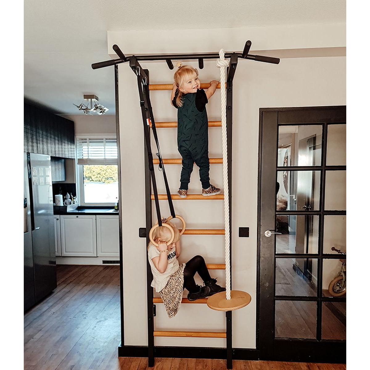 Zestaw składa się z drabinki, montowanego na stałe metalowego drążka do podciągania, kółek gimnastycznych oraz liny do wspinania z talerzem. Z powodzeniem może zastąpić ściankę wspinaczkową, od której jest znacznie bardziej wielofunkcyjna. Maksymalna waga użytkownika drabinki BenchK 222B to aż 150 kg, dzięki czemu korzystać z niej mogą właściwie wszyscy członkowie rodziny.