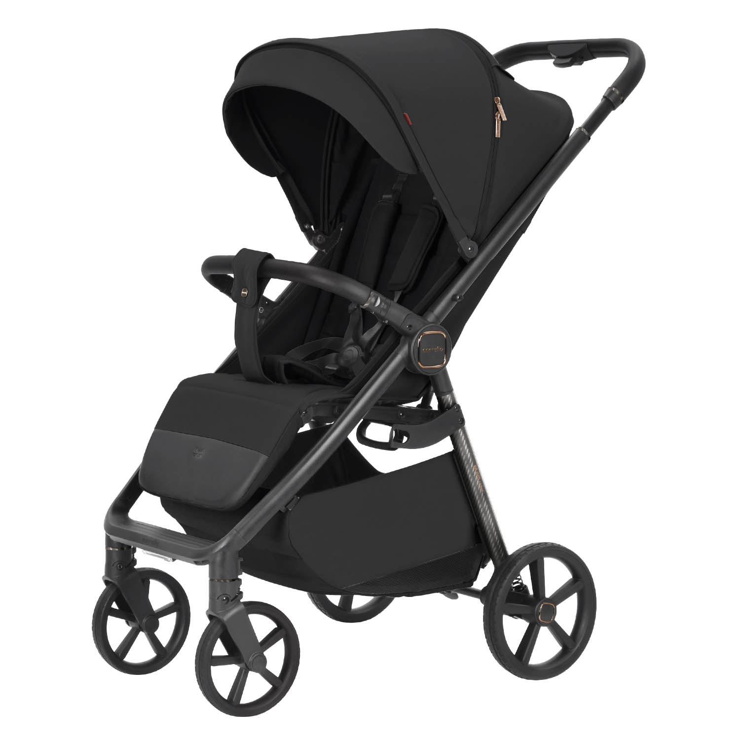 Nowy wózek spacerowy Bravo Carbon CRL-5530 Idealne połączenie funkcjonalności, technologii i estetyki. Lekka rama, miękka amortyzacja, optymalne wymiary i bogate wyposażenie. Oprócz nowej palety kolorystycznej Bravo Carbon przyciąga uwagę wyrazistymi kombinacjami materiałów ramy: wytrzymały, ultralekki karbon z charakterystycznym wzorem oraz matowe czarne, lśniące lub głębokie szare wykończenie aluminiowej ramy – w zależności od wybranego koloru wózka. Strukturalna i trwała ekoskóra na pałąku i rączce dopełnia całości, a eleganckie detale podkreśla efektowne okucie. Efektywne codzienne użytkowanie bez nadmiernego wysiłku i straty czasu zapewnia niewielka waga Bravo Carbon. Intuicyjna regulacja i kompaktowe składanie odbywają się jedną ręką. Idealne połączenie funkcjonalności, technologii i estetyki. Bravo Carbon jest przeznaczony dla dzieci od 6. miesiąca życia. Siedzisko rozkłada się do pozycji leżącej, tworząc płaską powierzchnię do snu podczas spacerów. Wysoka budka i regulowany podnóżek pozwalają na użytkowanie wózka aż do 4. roku życia. Regulacja wysokości rączki odbywa się teleskopowo. Kąt nachylenia oparcia i podnóżka regulowany jest jedną ręką za pomocą mechanizmu przyciskowego. Kosz wózka ma sztywną podstawę i wygodny dostęp. Bezpieczeństwo i komfort dziecka zapewniają pięciopunktowe pasy, elegancki magnetyczny zamek, obrotowy pałąk, ogranicznik zapobiegający zsuwaniu się oraz wbudowana lampa LED. Dostępne są 3 tryby światła: mocne, średnie i pulsacyjne (ładowanie za pomocą kabla USB Type-C). Wymiary siedziska pozwalają na komfortowe ułożenie dziecka w zimowym ubraniu, a głęboka budka i ocieplona osłona na nogi chronią przed niekorzystnymi warunkami atmosferycznymi. Tapicerka wózka jest wodoodporna i chroni przed promieniowaniem UV (SPF 50). Na upalne dni przewidziano okienko wentylacyjne w połączeniu z moskitierą, a także dodatkowe okienko w górnej części budki – bez plastikowego elementu (w przeciwieństwie do wcześniejszych modeli z serii Bravo). Cały materiał wózka, w tym kosz, można zdjąć do prania. Miękkie amortyzatory, wytrzymałe gumowe opony i solidny bieżnik gwarantują pewne poruszanie się po każdej nawierzchni. Przednie koła są obrotowe z możliwością blokady w pozycji na wprost”. Wszystkie koła można łatwo zdjąć w celu czyszczenia. Składanie wózka jest proste: Należy jednocześnie nacisnąć przyciski regulacji wysokości oraz blokady przed przypadkowym złożeniem. Opuścić rączkę do najniższego położenia aż do usłyszenia kliknięcia i skierować ją do przodu w kierunku jazdy wózka. Podnieść wózek za specjalny uchwyt. Wózek składa się siedziskiem do środka – tapicerka pozostaje czysta i chroniona przed zabrudzeniem. Po złożeniu blokuje się i zachowuje pozycję pionową. Specyfikacja: Waga netto: 9,58 kg Wymiary po złożeniu: 47 × 53 × 70 cm Wymiary po rozłożeniu: 97 × 53 × 110 cm Wysokość rączki: od 104 do 110 cm Rozmiar kół: przednie – 18 cm, tylne – 22 cm Wysokość siedziska: 50 cm Powierzchnia do spania: 34 × 90 cm Wysokość oparcia: 50 cm”