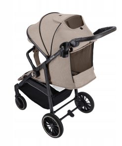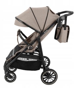 Do wyboru trzy kolory; czarny, beżowy oraz szary. Czarny lekki stelaż z dodatkiem rose gold na boku wózka oraz przy kołach. Zaletą wózka jest szeroki daszek, który chroni przed bezpośrednim nasłonecznieniem.