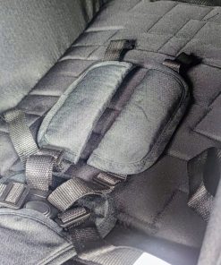 W środku miękka, mało brudząca tapicera w kolorze czarnym. Pasy bezpieczeństwa z miękkimi podkładkami.