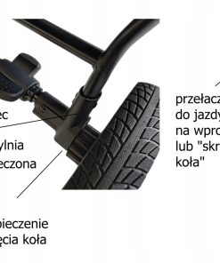 Koła mają możliwość jazdy skrętnej oraz po szybkim przestawieniu blokady na wprost